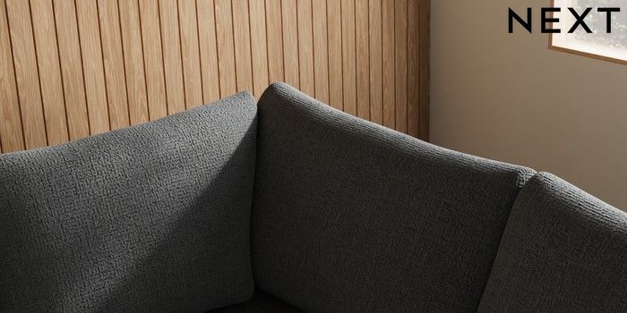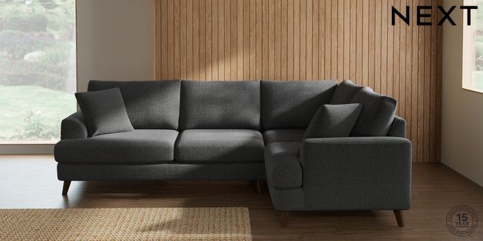 7.2.10 Buy Parker Medium Corner Sofa - Right Hand Chunky Texture Dark Grey Low Retro Tapered - Mid from the Next UK online shop Click here to use our accessible website