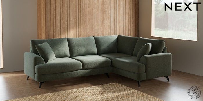 7.2.5 Buy Parker Medium Corner Sofa - Right Hand Chunky Texture Mid Forest Green High Metal - Black from the Next UK online shop Click here to use our accessible website