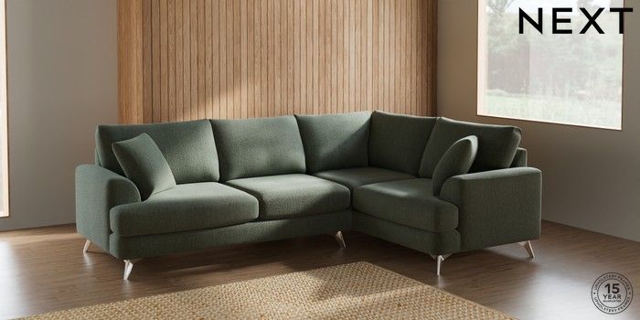 7.2.5 Buy Parker Medium Corner Sofa - Right Hand Chunky Texture Mid Forest Green High Metal - Chrome from the Next UK online shop Click here to use our accessible website