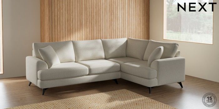 7.2.5 Buy Parker Medium Corner Sofa - Right Hand Chunky Texture Oyster High Metal - Black from the Next UK online shop Click here to use our accessible website