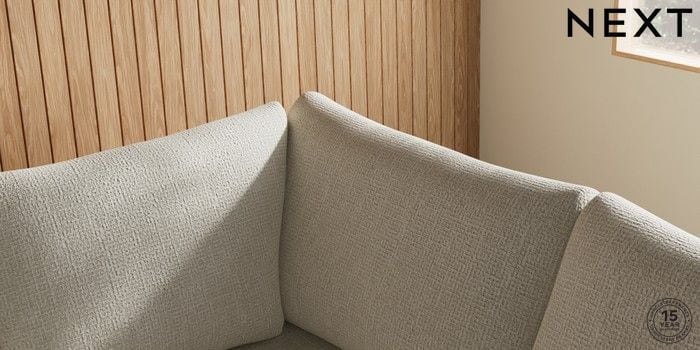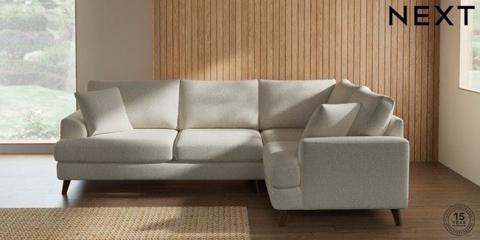 7.2.10 Buy Parker Medium Corner Sofa - Right Hand Chunky Texture Oyster Low Retro Tapered - Mid from the Next UK online shop Click here to use our accessible website