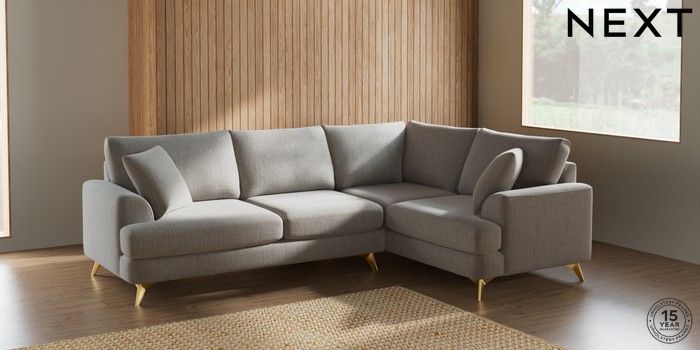 7.2.5 Buy Parker Medium Corner Sofa - Right Hand Chunky Weave Dove Grey High Metal - Brass from the Next UK online shop Click here to use our accessible website