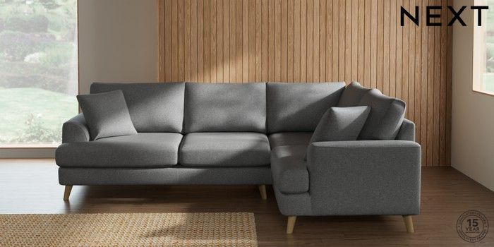 7.0.3 Buy Parker Medium Corner Sofa - Right Hand Chunky Weave Mid Grey Low Retro Tapered - Light from the Next UK online shop Click here to use our accessible website