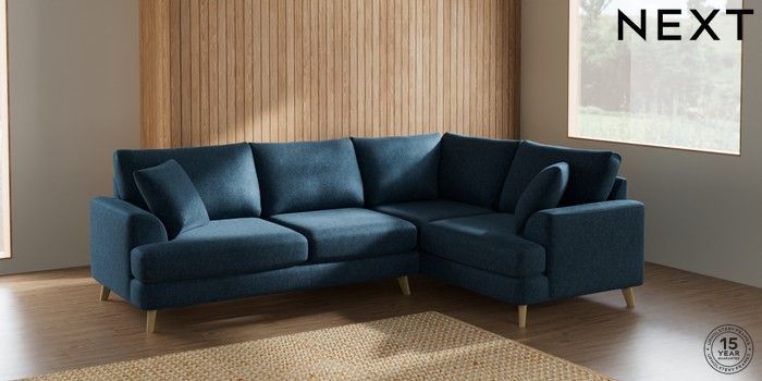 7.2.5 Buy Parker Medium Corner Sofa - Right Hand Cotswold Chenille Dark Blue Low Retro Tapered - Light from the Next UK online shop Click here to use our accessible website