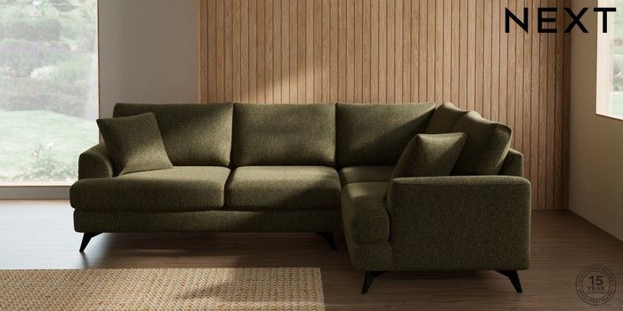 7.2.10 Buy Parker Medium Corner Sofa - Right Hand Cotswold Chenille Dark Green High Metal - Black from the Next UK online shop Click here to use our accessible website