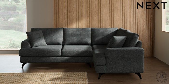 7.2.10 Buy Parker Medium Corner Sofa - Right Hand Cotswold Chenille Dark Grey High Metal - Black from the Next UK online shop Click here to use our accessible website