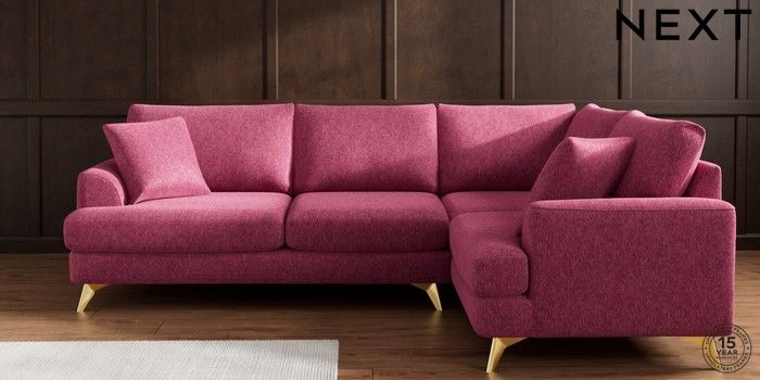 7.2.10 Buy Parker Medium Corner Sofa - Right Hand Cotswold Chenille Dark Raspberry Pink High Metal - Brass from the Next UK online shop Click here to use our accessible website
