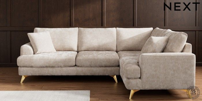 7.2.10 Buy Parker Medium Corner Sofa - Right Hand Distressed Velour Mid Natural High Metal - Brass from the Next UK online shop Click here to use our accessible website