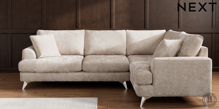 7.2.10 Buy Parker Medium Corner Sofa - Right Hand Distressed Velour Mid Natural High Metal - Chrome from the Next UK online shop Click here to use our accessible website