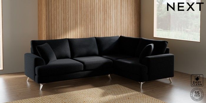 7.2.5 Buy Parker Medium Corner Sofa - Right Hand Fine Chenille Easy Clean Black High Metal - Chrome from the Next UK online shop Click here to use our accessible website