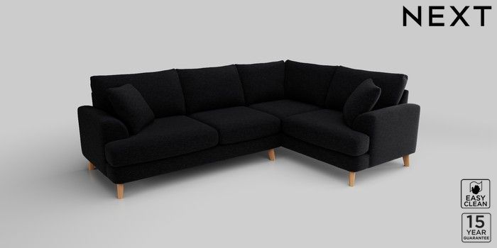 6.12.1 Buy Parker Medium Corner Sofa - Right Hand Fine Chenille Easy Clean Black Low Retro Tapered - Light from the Next UK online shop Click here to use our accessible website