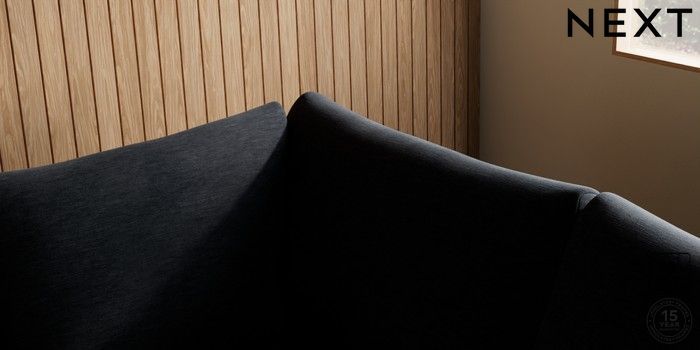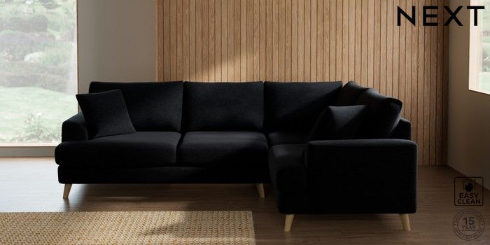 7.2.10 Buy Parker Medium Corner Sofa - Right Hand Fine Chenille Easy Clean Black Low Retro Tapered - Light from the Next UK online shop Click here to use our accessible website