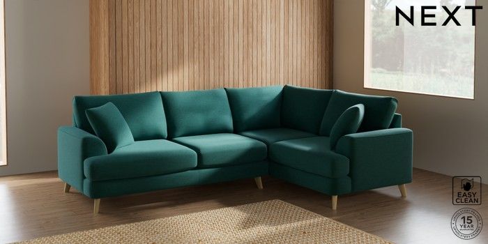 7.2.5 Buy Parker Medium Corner Sofa - Right Hand Fine Chenille Easy Clean Dark Juniper Green Low Retro Tapered - Light from the Next UK online shop Click here to use our accessible website