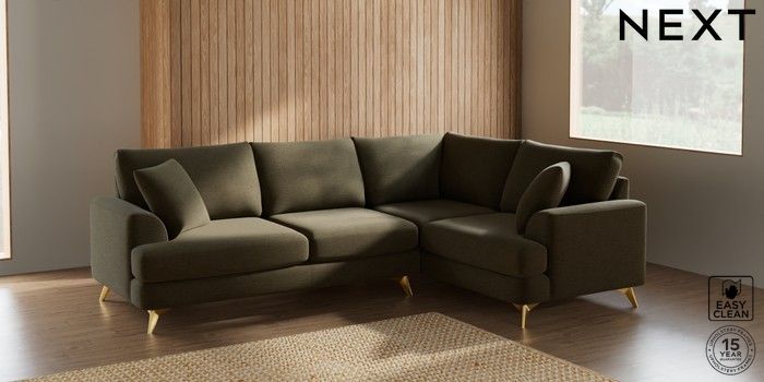 7.2.5 Buy Parker Medium Corner Sofa - Right Hand Fine Chenille Easy Clean Dark Moss Green High Metal - Brass from the Next UK online shop Click here to use our accessible website