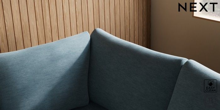 7.2.10 Buy Parker Medium Corner Sofa - Right Hand Fine Chenille Easy Clean Mid Blue High Metal - Chrome from the Next UK online shop Click here to use our accessible website