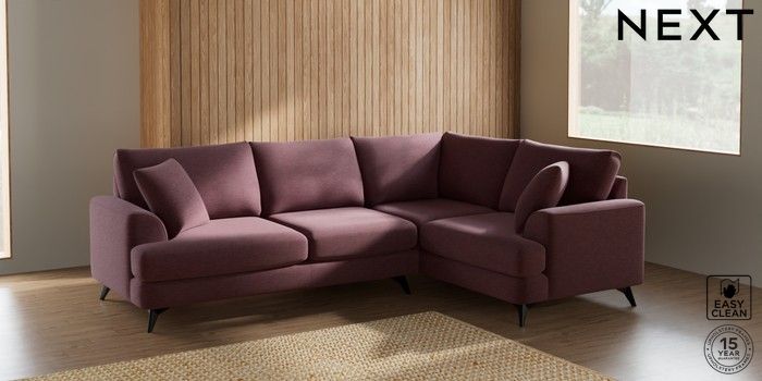 7.2.5 Buy Parker Medium Corner Sofa - Right Hand Fine Chenille Easy Clean Mid Mulberry Purple High Metal - Black from the Next UK online shop Click here to use our accessible website