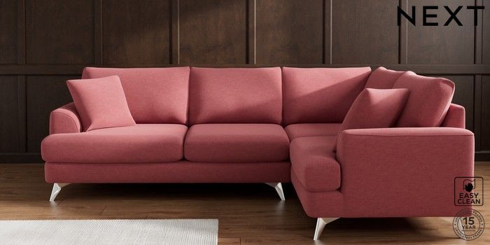 7.2.10 Buy Parker Medium Corner Sofa - Right Hand Fine Chenille Easy Clean Mid Pink High Metal - Chrome from the Next UK online shop Click here to use our accessible website