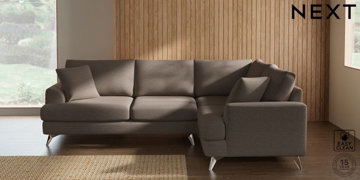 7.2.10 Buy Parker Medium Corner Sofa - Right Hand Fine Chenille Easy Clean Mid Taupe Brown High Metal - Chrome from the Next UK online shop Click here to use our accessible website