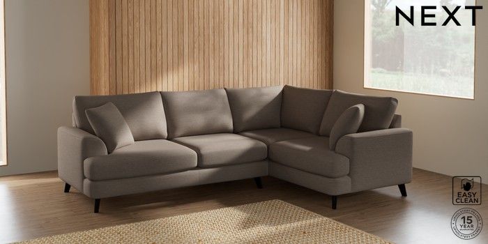 7.2.5 Buy Parker Medium Corner Sofa - Right Hand Fine Chenille Easy Clean Mid Taupe Brown Low Retro Tapered - Dark from the Next UK online shop Click here to use our accessible website