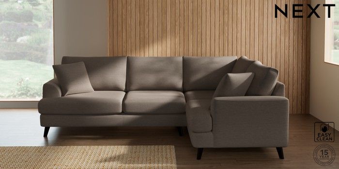 7.3.1 Buy Parker Medium Corner Sofa - Right Hand Fine Chenille Easy Clean Mid Taupe Brown Low Retro Tapered - Dark from the Next UK online shop Click here to use our accessible website