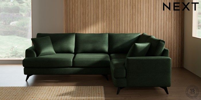 7.2.10 Buy Parker Medium Corner Sofa - Right Hand Luxe Chenille Dark Green High Metal - Black from the Next UK online shop Click here to use our accessible website