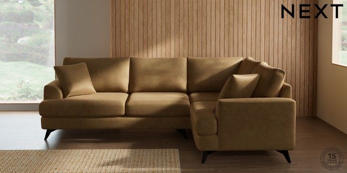 7.0.3 Buy Parker Medium Corner Sofa - Right Hand Luxe Chenille Honey Yellow High Metal - Black from the Next UK online shop Click here to use our accessible website