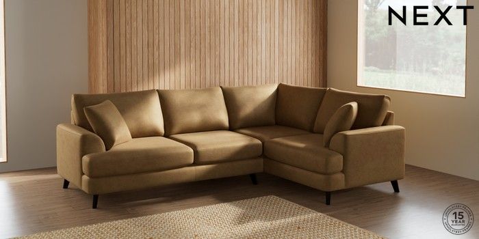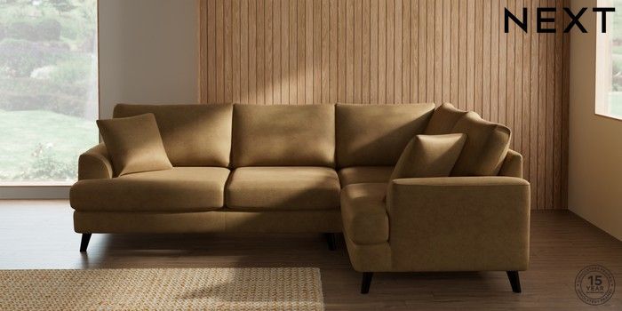 7.0.3 Buy Parker Medium Corner Sofa - Right Hand Luxe Chenille Honey Yellow Low Retro Tapered - Dark from the Next UK online shop Click here to use our accessible website