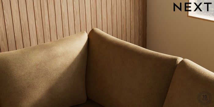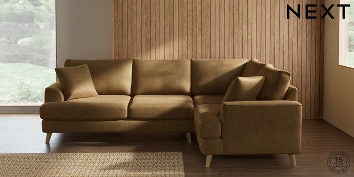 7.0.3 Buy Parker Medium Corner Sofa - Right Hand Luxe Chenille Honey Yellow Low Retro Tapered - Light from the Next UK online shop Click here to use our accessible website