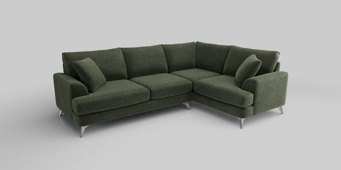 6.12.1 Buy Parker Medium Corner Sofa - Right Hand Luxe Chenille Mid Green High Metal - Chrome from the Next UK online shop Click here to use our accessible website