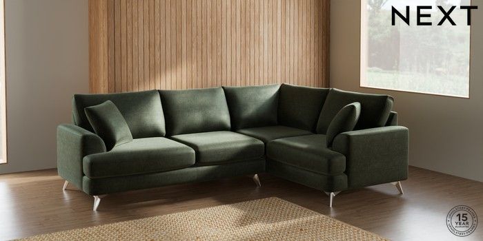 7.0.3 Buy Parker Medium Corner Sofa - Right Hand Luxe Chenille Mid Green High Metal - Chrome from the Next UK online shop Click here to use our accessible website