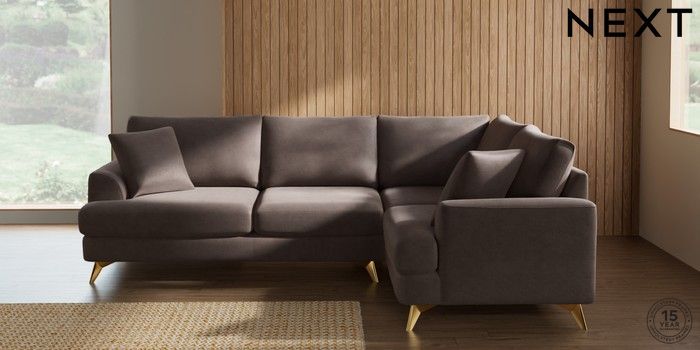 7.2.10 Buy Parker Medium Corner Sofa - Right Hand Luxe Chenille Mink Brown High Metal - Brass from the Next UK online shop Click here to use our accessible website