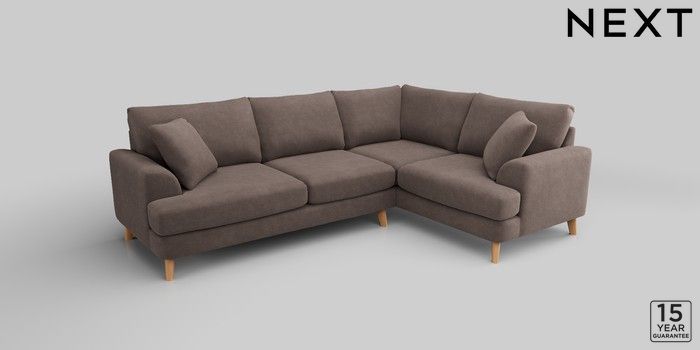 6.12.1 Buy Parker Medium Corner Sofa - Right Hand Luxe Chenille Mink Brown Low Retro Tapered - Light from the Next UK online shop Click here to use our accessible website