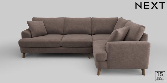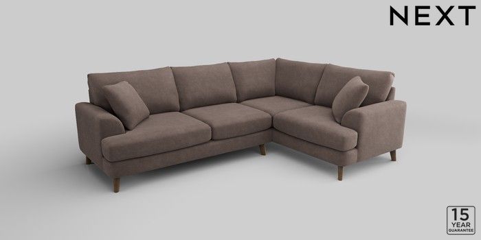 6.12.1 Buy Parker Medium Corner Sofa - Right Hand Luxe Chenille Mink Brown Low Retro Tapered - Mid from the Next UK online shop Click here to use our accessible website