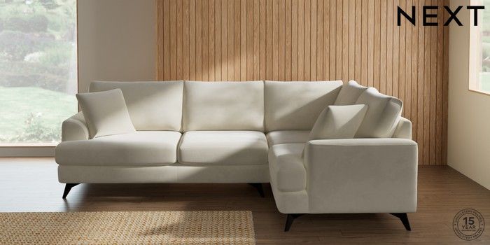 7.0.3 Buy Parker Medium Corner Sofa - Right Hand Luxe Chenille Oyster High Metal - Black from the Next UK online shop Click here to use our accessible website