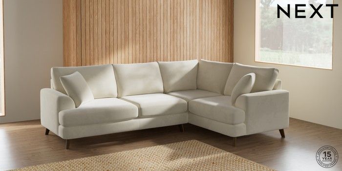 7.0.3 Buy Parker Medium Corner Sofa - Right Hand Luxe Chenille Oyster Low Retro Tapered - Mid from the Next UK online shop Click here to use our accessible website