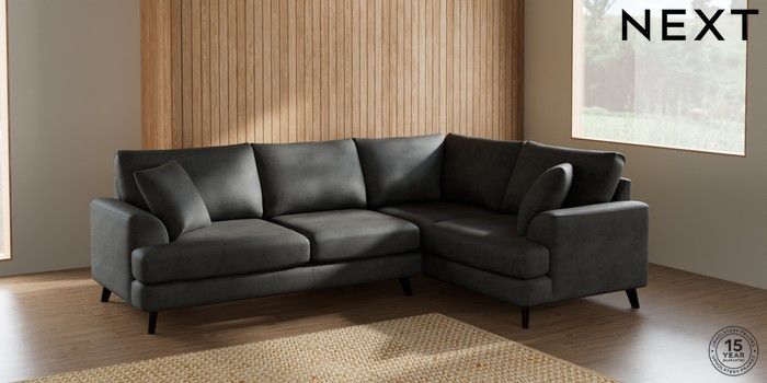7.2.5 Buy Parker Medium Corner Sofa - Right Hand Monza Faux Leather Easy Clean Dark Grey Low Retro Tapered - Dark from the Next UK online shop Click here to use our accessible website