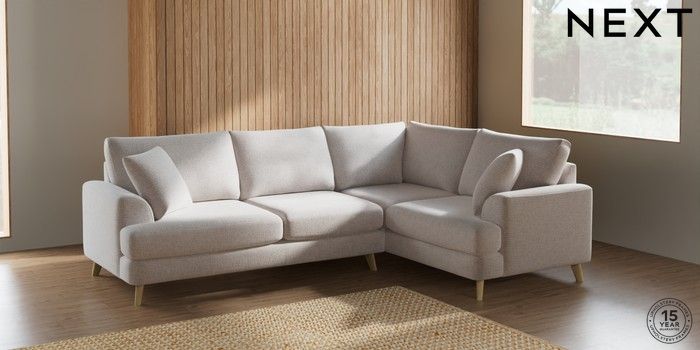 7.2.6 Buy Parker Medium Corner Sofa - Right Hand Multi Weave Oyster Low Retro Tapered - Light from the Next UK online shop Click here to use our accessible website