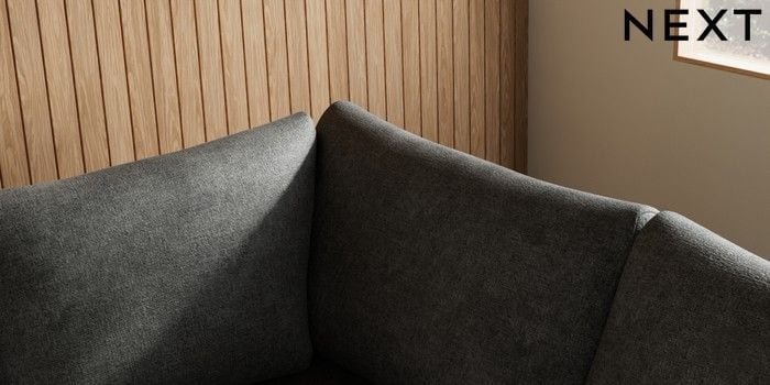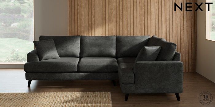 7.2.10 Buy Parker Medium Corner Sofa - Right Hand Plush Chenille Dark Grey Low Retro Tapered - Dark from the Next UK online shop Click here to use our accessible website