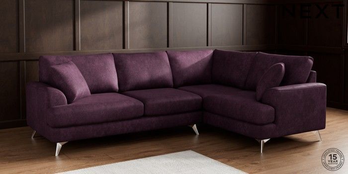 7.2.5 Buy Parker Medium Corner Sofa - Right Hand Plush Chenille Dark Plum Purple High Metal - Chrome from the Next UK online shop Click here to use our accessible website