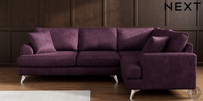 7.2.10 Buy Parker Medium Corner Sofa - Right Hand Plush Chenille Dark Plum Purple High Metal - Chrome from the Next UK online shop Click here to use our accessible website