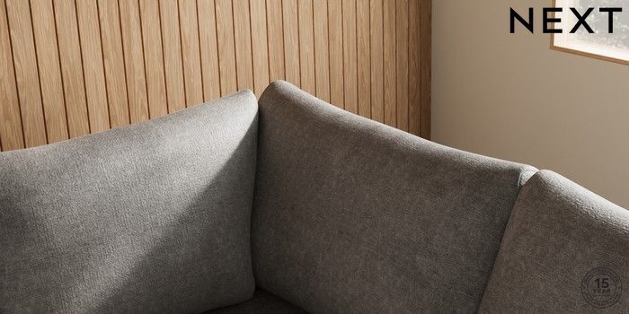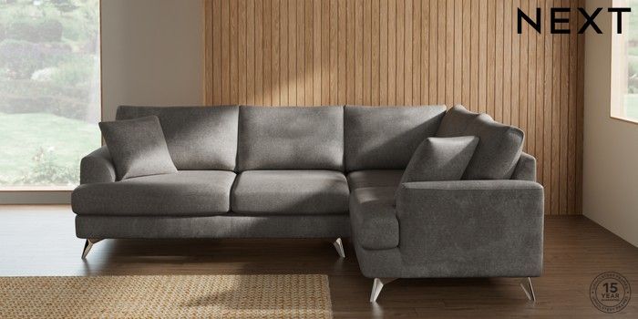 7.2.10 Buy Parker Medium Corner Sofa - Right Hand Plush Chenille Light Grey High Metal - Chrome from the Next UK online shop Click here to use our accessible website