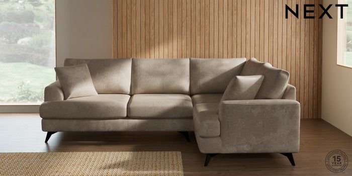 7.2.10 Buy Parker Medium Corner Sofa - Right Hand Plush Chenille Light Natural High Metal - Black from the Next UK online shop Click here to use our accessible website
