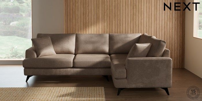 7.2.10 Buy Parker Medium Corner Sofa - Right Hand Plush Chenille Mid Natural High Metal - Black from the Next UK online shop Click here to use our accessible website