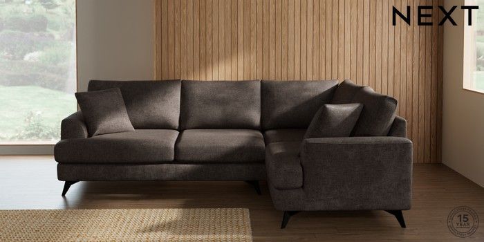 7.2.10 Buy Parker Medium Corner Sofa - Right Hand Plush Chenille Mink Brown High Metal - Black from the Next UK online shop Click here to use our accessible website