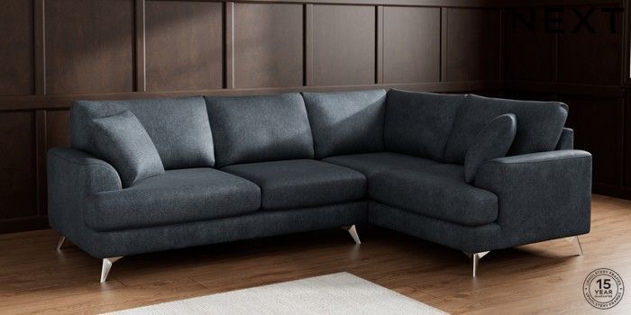 7.2.5 Buy Parker Medium Corner Sofa - Right Hand Plush Chenille Slate Blue High Metal - Chrome from the Next UK online shop Click here to use our accessible website