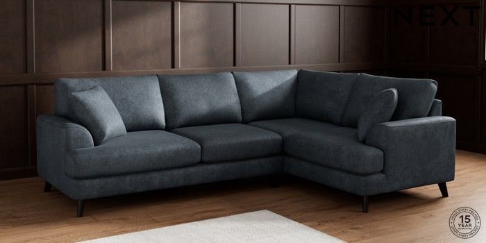 7.2.5 Buy Parker Medium Corner Sofa - Right Hand Plush Chenille Slate Blue Low Retro Tapered - Dark from the Next UK online shop Click here to use our accessible website