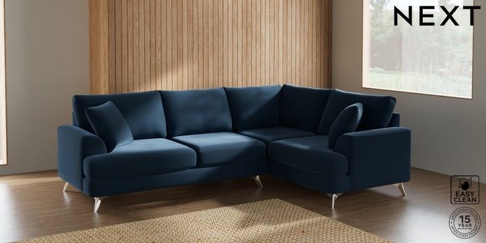 7.0.3 Buy Parker Medium Corner Sofa - Right Hand Plush Velvet Easy Clean Airforce Blue High Metal - Chrome from the Next UK online shop Click here to use our accessible website