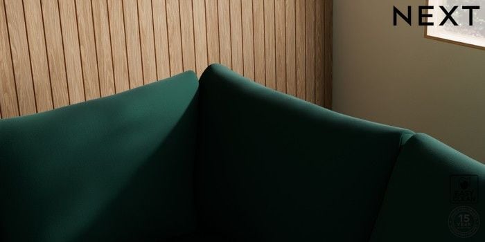 7.3.1 Buy Parker Medium Corner Sofa - Right Hand Plush Velvet Easy Clean Bottle Green Low Retro Tapered - Mid from the Next UK online shop Click here to use our accessible website