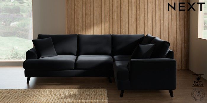 7.2.10 Buy Parker Medium Corner Sofa - Right Hand Plush Velvet Easy Clean Charcoal Grey Low Retro Tapered - Dark from the Next UK online shop Click here to use our accessible website