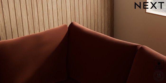 7.2.10 Buy Parker Medium Corner Sofa - Right Hand Plush Velvet Easy Clean Ginger Orange Low Retro Tapered - Light from the Next UK online shop Click here to use our accessible website